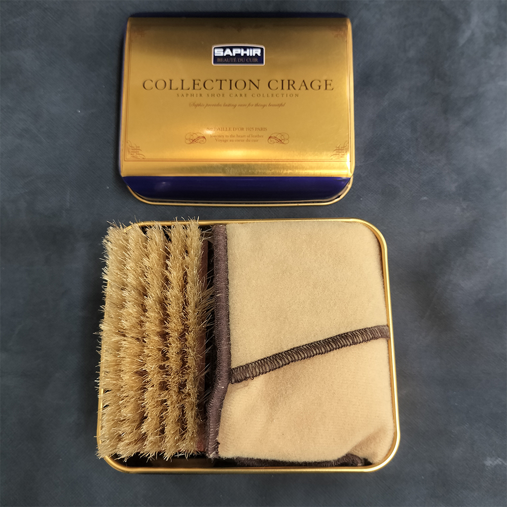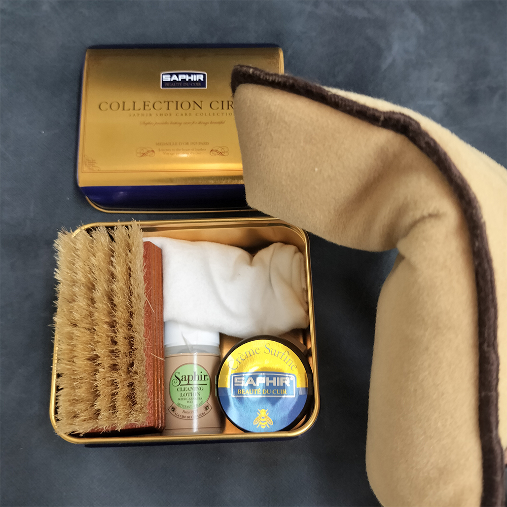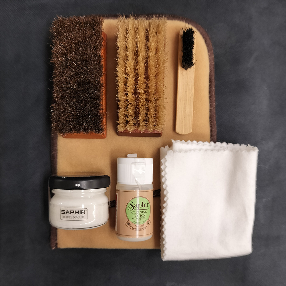 靴磨きが初めての方でも使いやすいよう、必要なケア用品がギュッとひと揃いになったセットです。