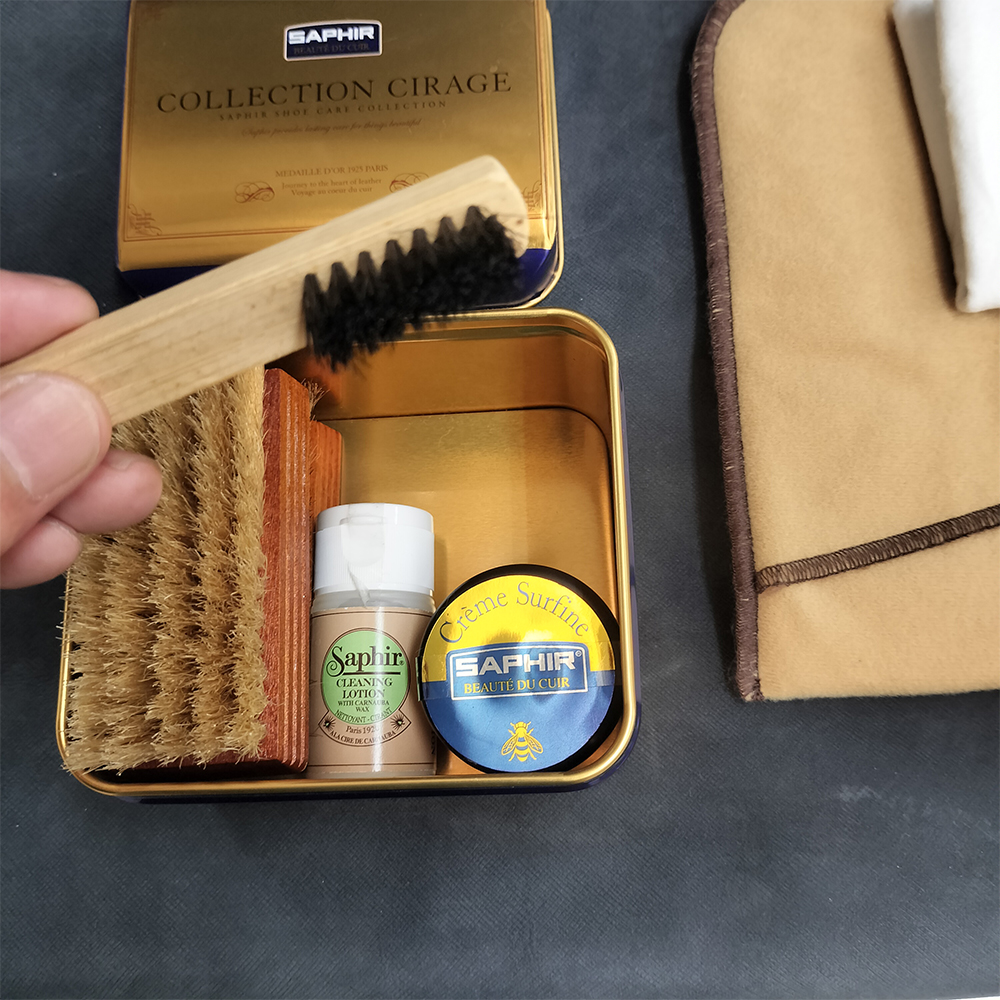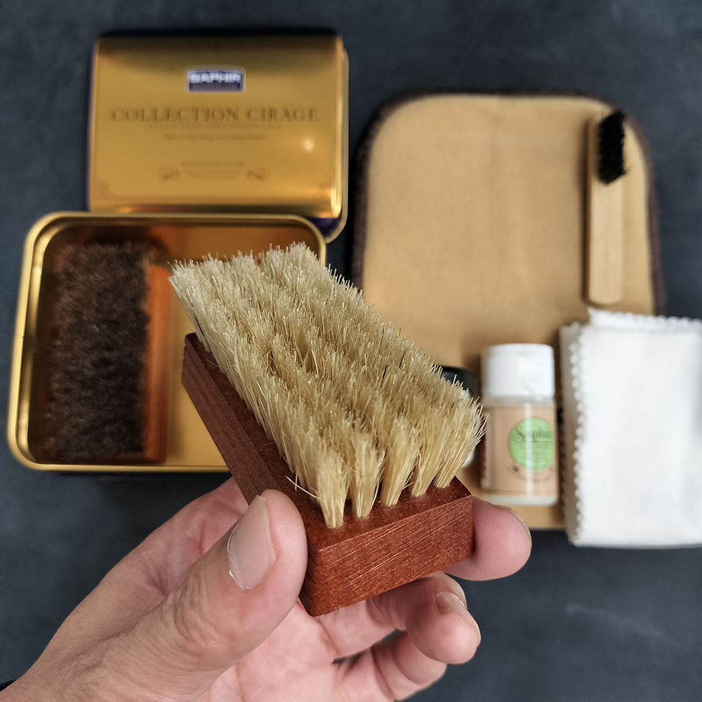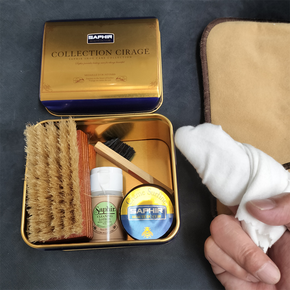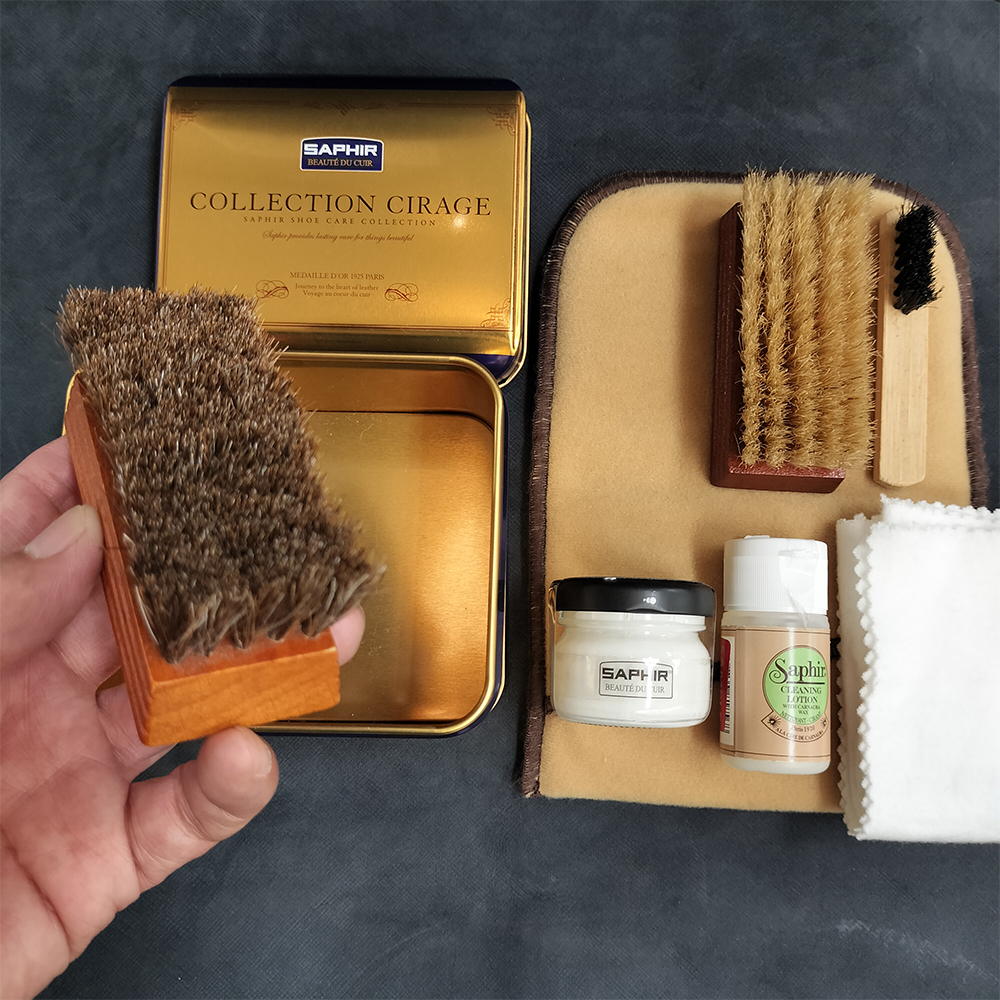 靴磨きが初めての方でも使いやすいよう、必要なケア用品がギュッとひと揃いになったセットです。