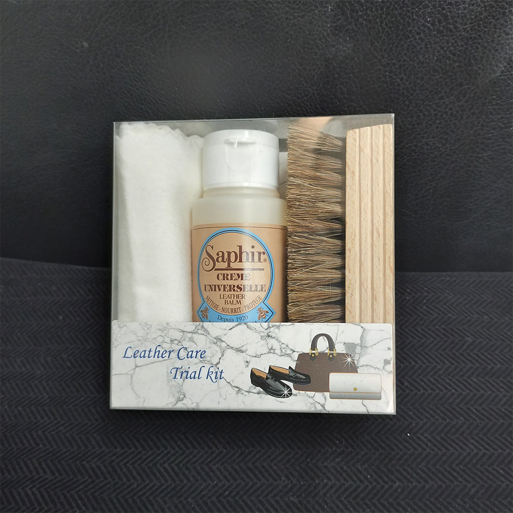 自宅で本格的な革製品のお手入れを始めたい方に、サフィールのトライアルキットをご紹介します!必要なケア用品をコンパクトにまとめ、扱いやすさも実力も抜群です。短時間で本来の美しさをよみがえらせるお手入れが可能。初めてでも安心して、靴やバッグ、財布など幅広く手軽にレザーケアをお試しいただける内容です!