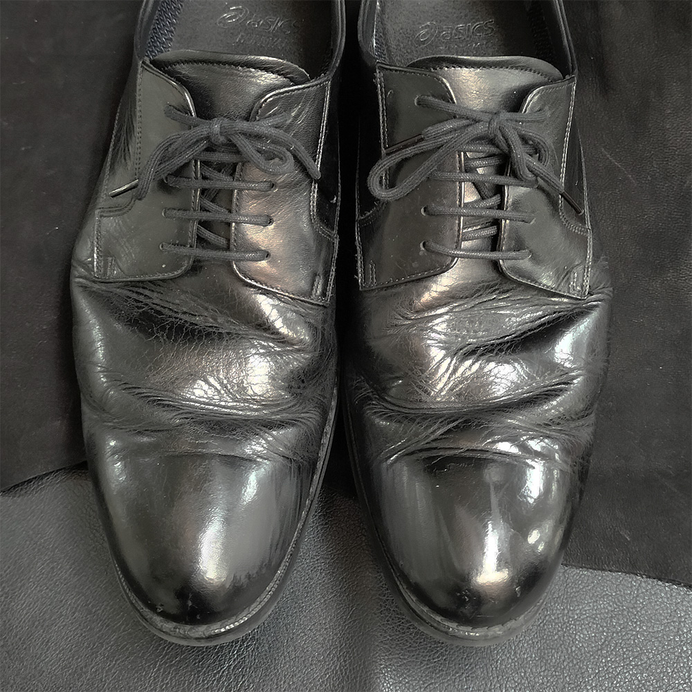 ASICS RUNWALKのような履き心地がよく気軽に履けるビジネスシューズは、ギラっとした力強いツヤも良いですが、清潔感のある自然な光沢もよく似合います。