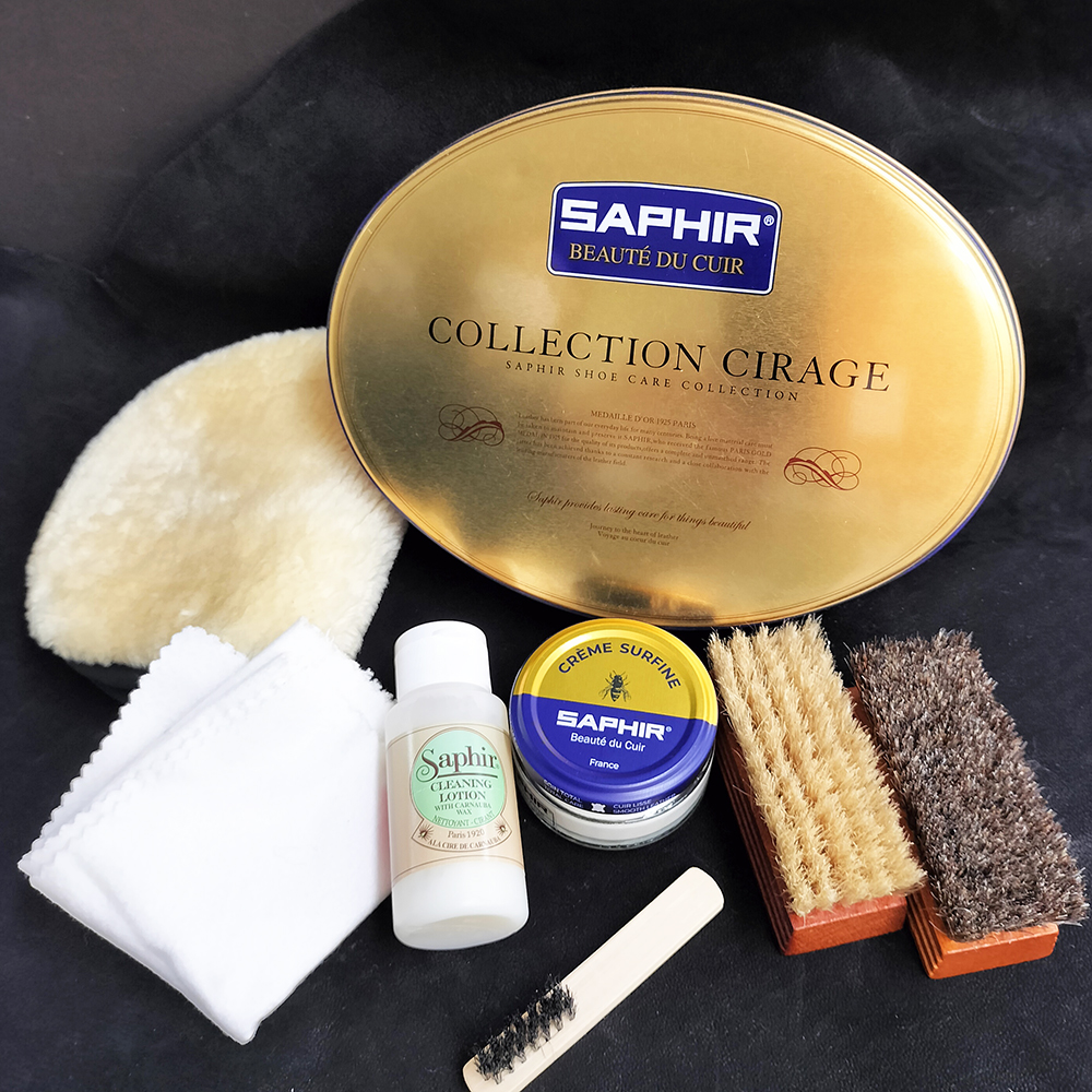来店されたお客様の綺麗に手入れされた靴を見て興味を持ち、シューケアをしながら愛着を持って長く履くという考えに共感したことがきっかけでサフィールに出会う。