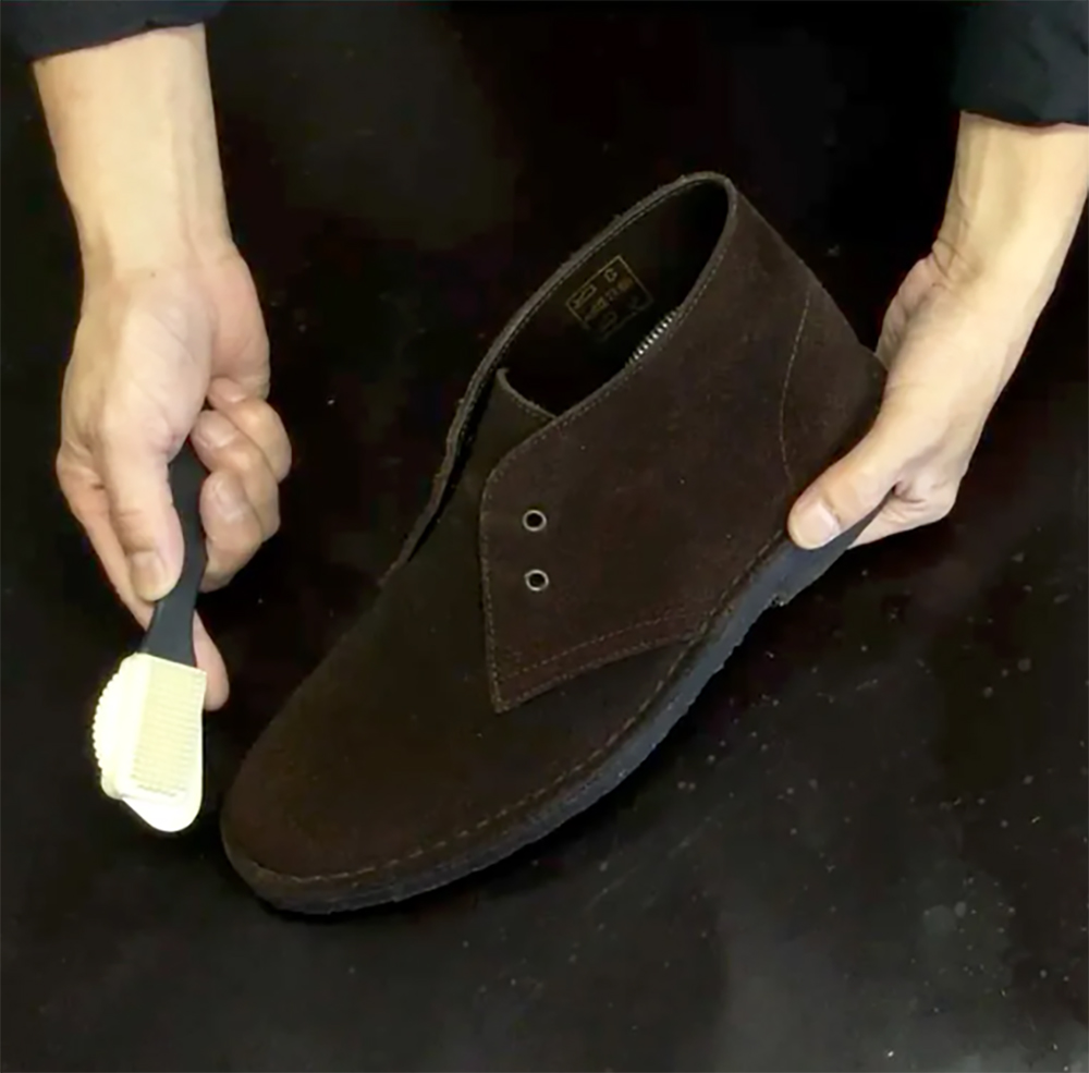 スエードブラシで砂ぼこりをしっかり除去してください。