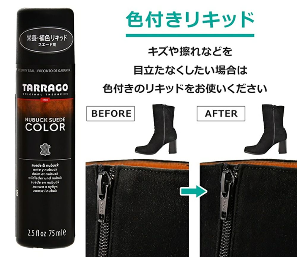 今こそケアのベストタイミング!春のおしゃれを楽しむためのおすすめアイテム、TARRAGO(タラゴ)の「ヌバック&スエードカラーリキッド」をご紹介。初心者にも扱いやすく、1本で補色・保革・毛並みのコンディション調整が可能。色あせたスエードを鮮やかに復活させてくれます。春先も、起毛革は活躍するので、ケアして準備をしておきましょう。