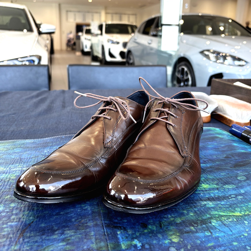 イベント当日、熊田さんの手によって美しく磨かれた靴をご覧ください。